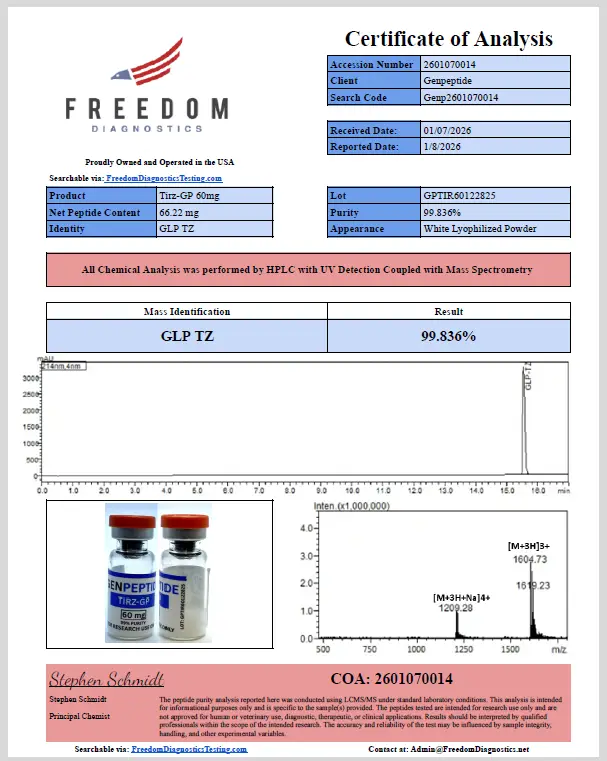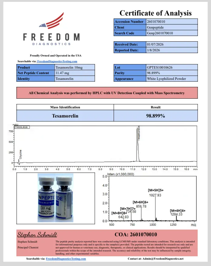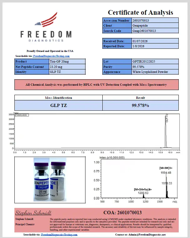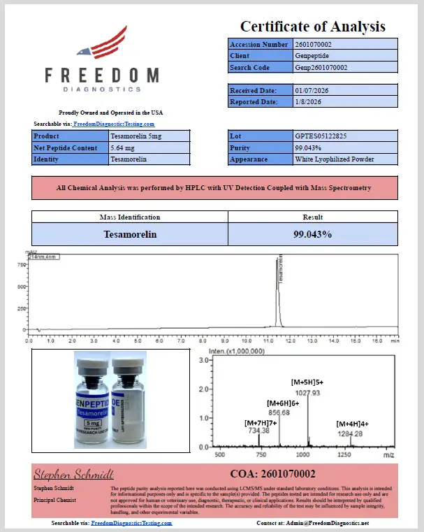 Additionally, a COA provides batch-specific information, enabling scientists to track and compare results consistently across different studies. Without this verification, the risk of flawed or unreliable research increases, as contaminants, inconsistencies, or inaccurate product claims can compromise findings. For this reason, at Genpeptide, we prioritize full transparency.